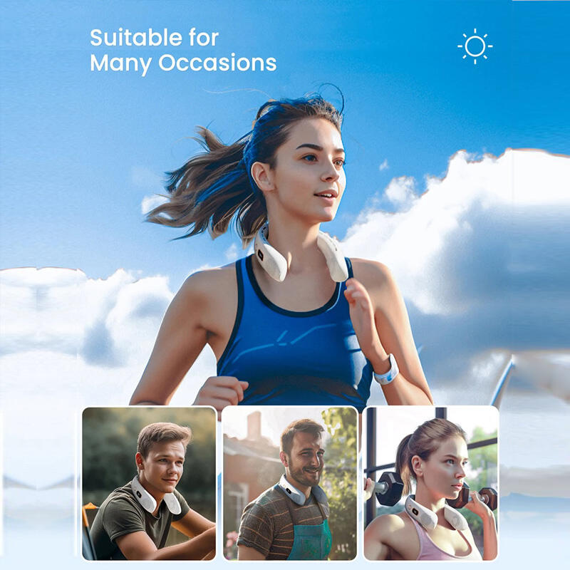 • Diseño ergonómico tipo auriculares: Se ajusta cómodamente al cuello, dejando tus manos libres mientras te mantiene fresco.